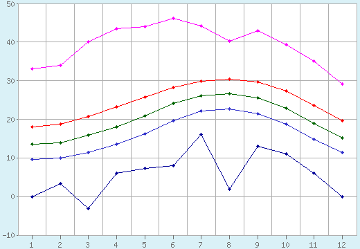 | august | 2.0 (1974) | 22.6 | 26.7 | 30.4 | 40.2 (2003) |