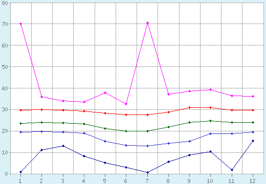 | january | 0.9 (1981) | 19.4 | 23.6 | 29.7 | 70.0 (1981) |