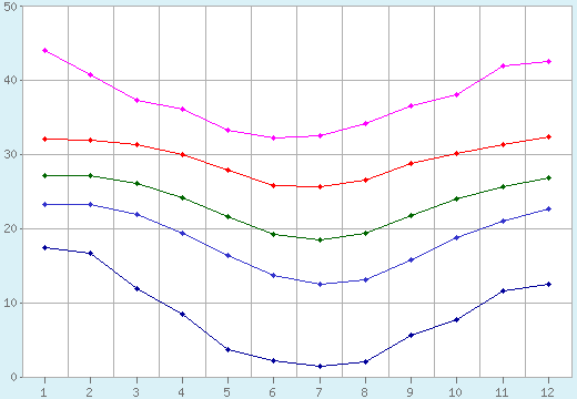| january | 17.4 (1952) | 23.2 | 27.1 | 32.0 | 44.0 (1994) |