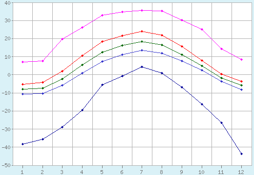| enero | -38.2 (1987) | -10.7 | -7.9 | -5.2 | 7.1 (2007) |