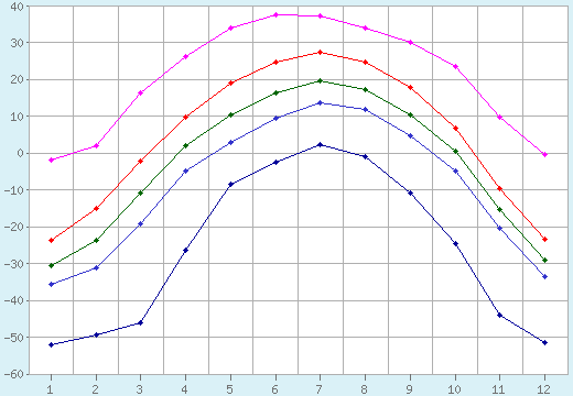 | noviembre | -44.1 (1940) | -20.4 | -15.4 | -9.6 | 9.7 (1965) |