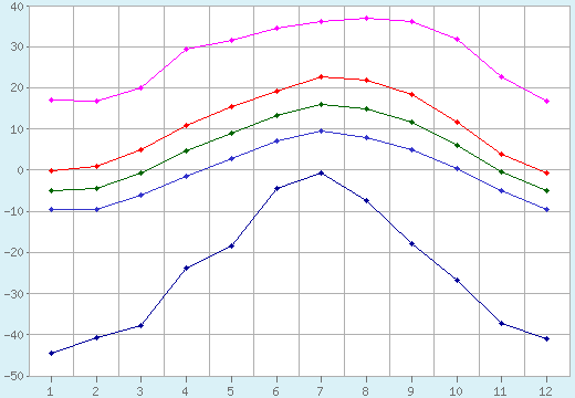 | diciembre | -41.1 (1968) | -9.5 | -5.1 | -0.7 | 16.7 (1939) |