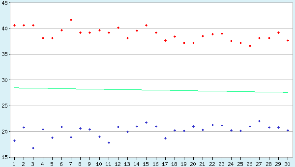Temperatura media mensual normal para Diciembre: 28.1°C. Temperatura media mensual en este mes: °C. Salida de la temperatura normal: .
