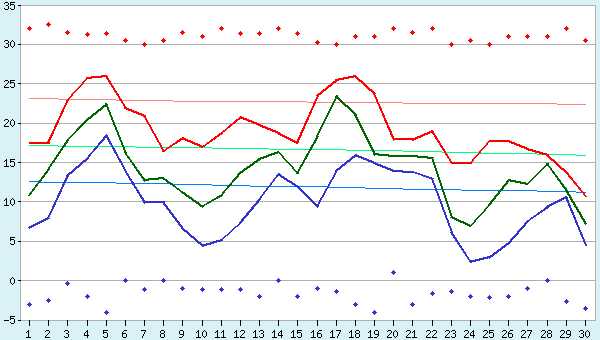 | 11 | 18.0 | 24.9 | 31.0 | -0.8 | 0.0 |
